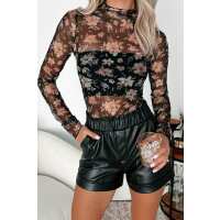 Among The Wildflowers Floral Mesh Long Sleeve Top (Black) Large