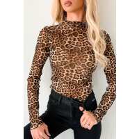 Gentle Spark Animal Print Mesh Long Sleeve Top (Leopard) MEDIUM