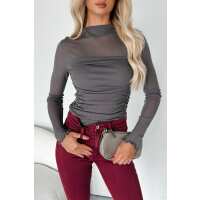 Ruthie Ruched Mesh Bodysuit (Dark Grey) SMALL