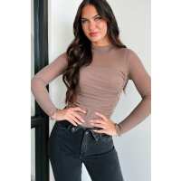 Ruthie Ruched Mesh Bodysuit (Mocha) LARGE