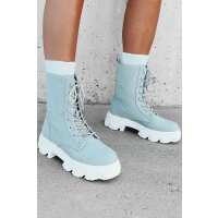 Marching On Rhinestone Lace-Up Combat Booties (Denim) 6