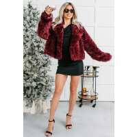So Extra Plush Textured Cropped Jacket (Burgundy) SMALL