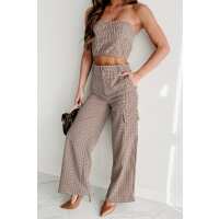 Water Under The Bridge Plaid Two-Piece Pant Set (Brown) Small