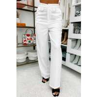 Crunching Numbers High Waisted Straight Leg Pants (White) Small