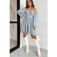 Never Ending Sky Bubble Sleeve Mini Dress (Heather Grey) Large