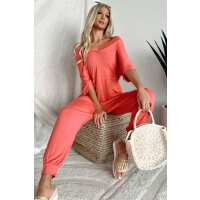Tired Eyes Short Sleeve Slouchy Jumpsuit (Coral) Medium