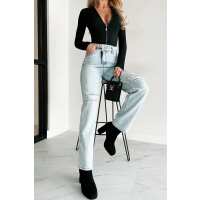 Hayden High Waisted Cross-Over Mom Jeans (Light) Small