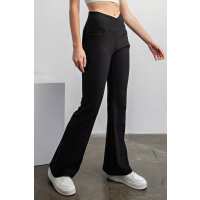 Dominique Cross-Waist Flare Pants (Black) Medium