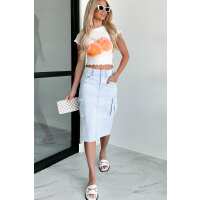 Trendy Locations Denim Wash Cargo Midi Skirt (Blue) Large