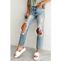 Ingrid High Rise Distressed Special A Straight Leg Jeans (Light) 1