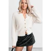 Brianne Fuzzy Cardigan Sweater (Off White) LARGE
