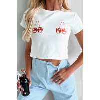Caught You Staring Cherry Graphic Tee (Off White) Small