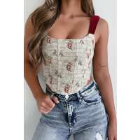 Iconic Figure Lace-Up Corset Top (Beige Floral) Small