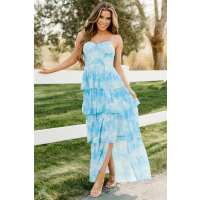 Twinkling Eyes Tiered Ruffle Maxi Dress (Blue) LARGE
