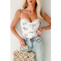 As It Happens Floral Lace Bodysuit (White/Pink) Small