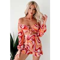 Dance The Night Away Pleated Long Sleeve Romper (Pink/Multi) SMALL