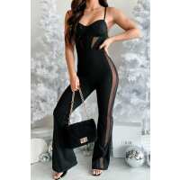 Your Favorite Distraction Mesh Contrast Jumpsuit (Black) SMALL