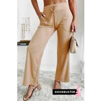 Doorbuster Just Relaxing Wide Leg Drawstring Waist Lounge Pants (Khaki) Small