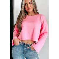 Always Calm Wide Sleeve Crop Sweater (Pink) Small