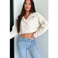 Go-Getter Attitude Cropped Snap-Button Pullover (Cream) Small