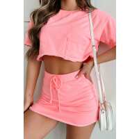 Pushing Forward Crop Top & Mini Skirt Set (Neon Pink) Small