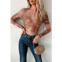 Lost In Time Printed Mesh Bodysuit (Brown) SMALL