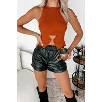 Thrill Rider Luxe Ribbed Cut-Out Tank Top (Caramel) Large