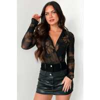 Access Denied Floral Lurex Surplice Bodysuit (Black/Gold) SMALL