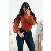 I'm Kind Of A Big Deal Pearl Mesh Surplice Bodysuit (Cinnamon) SMALL
