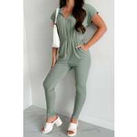 Best Laid Plans Zip-Front Hooded Ribbed Jumpsuit (Sage) Small