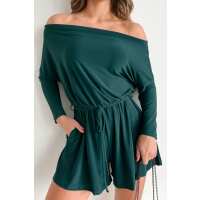 With Absolute Certainty Off The Shoulder Romper (Hunter Green) Small