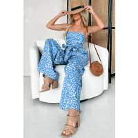 Beachside Cafe Strapless Floral Jumpsuit (Sand/Blue) Small
