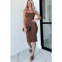 Wishing For Summer Ribbed Henley Midi Dress (Cocoa) Small