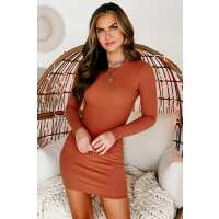 Rolling The Dice Ribbed Long Sleeve Bodycon (Rust) Small