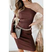 Feeling Like New Ribbed Colorblock Sweater Dress (Chocolate/Camel) Small