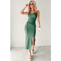 Effortlessly Cool Sleeveless Cargo Pocket Midi Dress (Green) SMALL