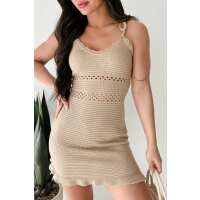 Ambitious Soul Tie Strap Crochet Mini Dress (Khaki) SMALL