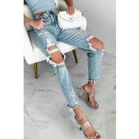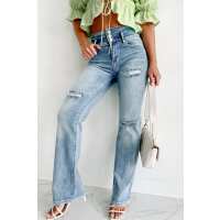 Zaida High Rise Distressed Risen Slim Straight Jeans (Light) 1