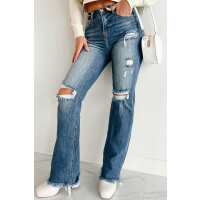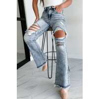 Evangeline High Rise Distressed Risen Flare Jeans (Medium Acid) 0