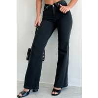 Otto Mid-Rise Folded Waist Risen Wide Leg Jeans (Black) 0