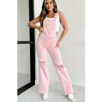 Majorly Crushing Wide Leg Distressed Risen Overalls (Acid Pink) Small