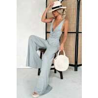 Italian Summers Sleeveless Twist-Knot Jumpsuit (Heather Grey) Medium