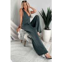 Iconic Comfort Shoulder Tie Wide Leg Jumpsuit (Charcoal) Small