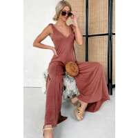 Iconic Comfort Shoulder Tie Wide Leg Jumpsuit (Marsala) Small