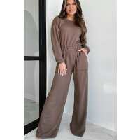 Plausible Deniability Long Sleeve Wide Leg Jumpsuit (Mocha) Medium