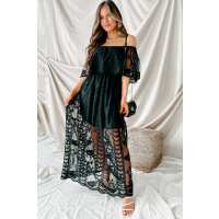 Getting Acquainted Lace Overlay Maxi Dress (Black) Small