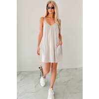 Vibrant Summer Nights Ribbed Romper Dress (Taupe Grey) LARGE
