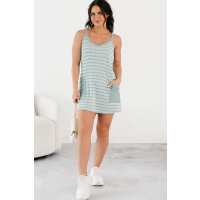 Keep It Moving Sleeveless Striped Romper Dress (Sea Grass) MEDIUM