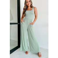 Always Busy Sleeveless Wide Leg Jumpsuit (Dusty Sage) Small