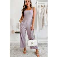 Meeting At The Market Linen Tie-Back Jumpsuit (Dark Lavender) Small